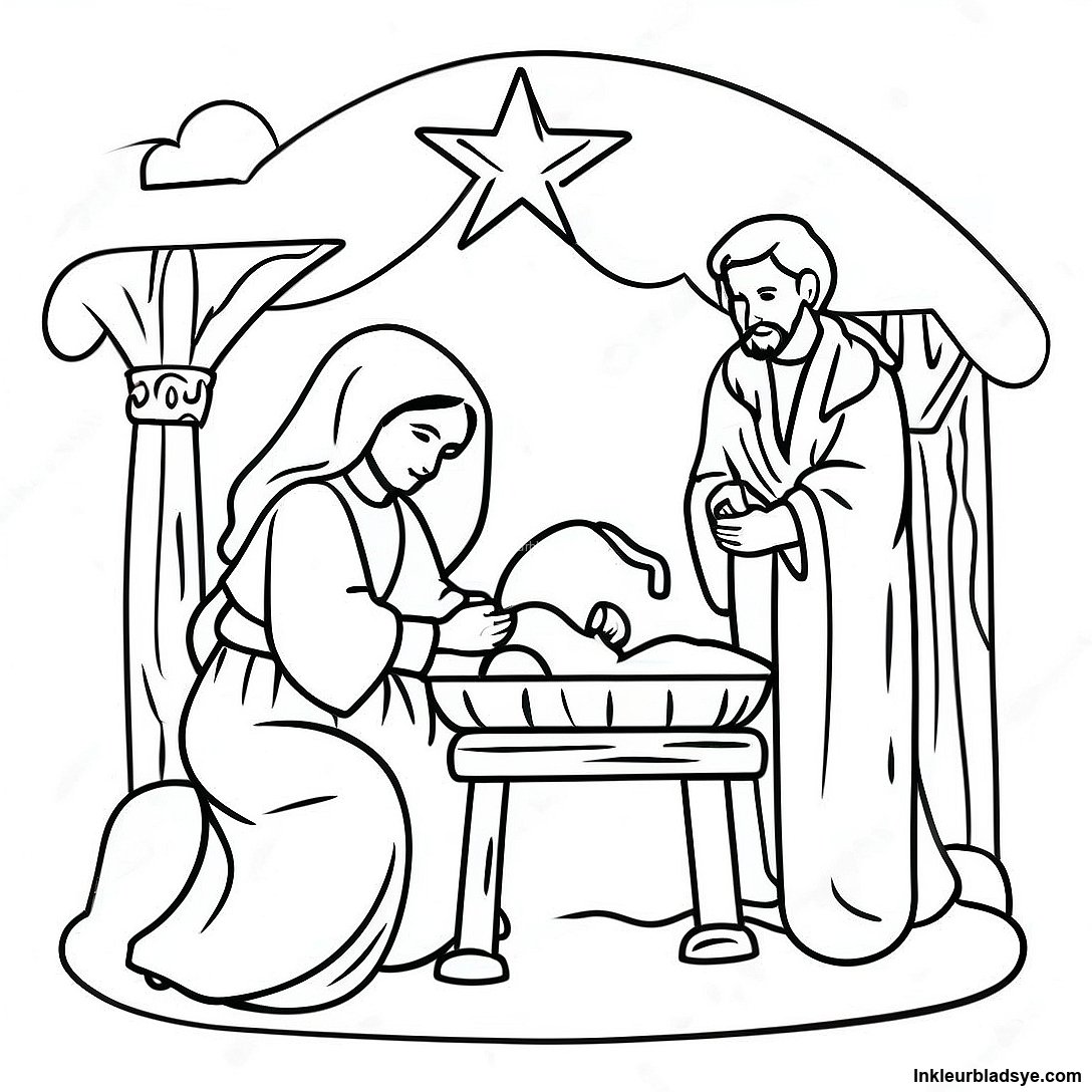 Laai Drukbare PDF af van Advent Geboorte Toneel Inkleurblad