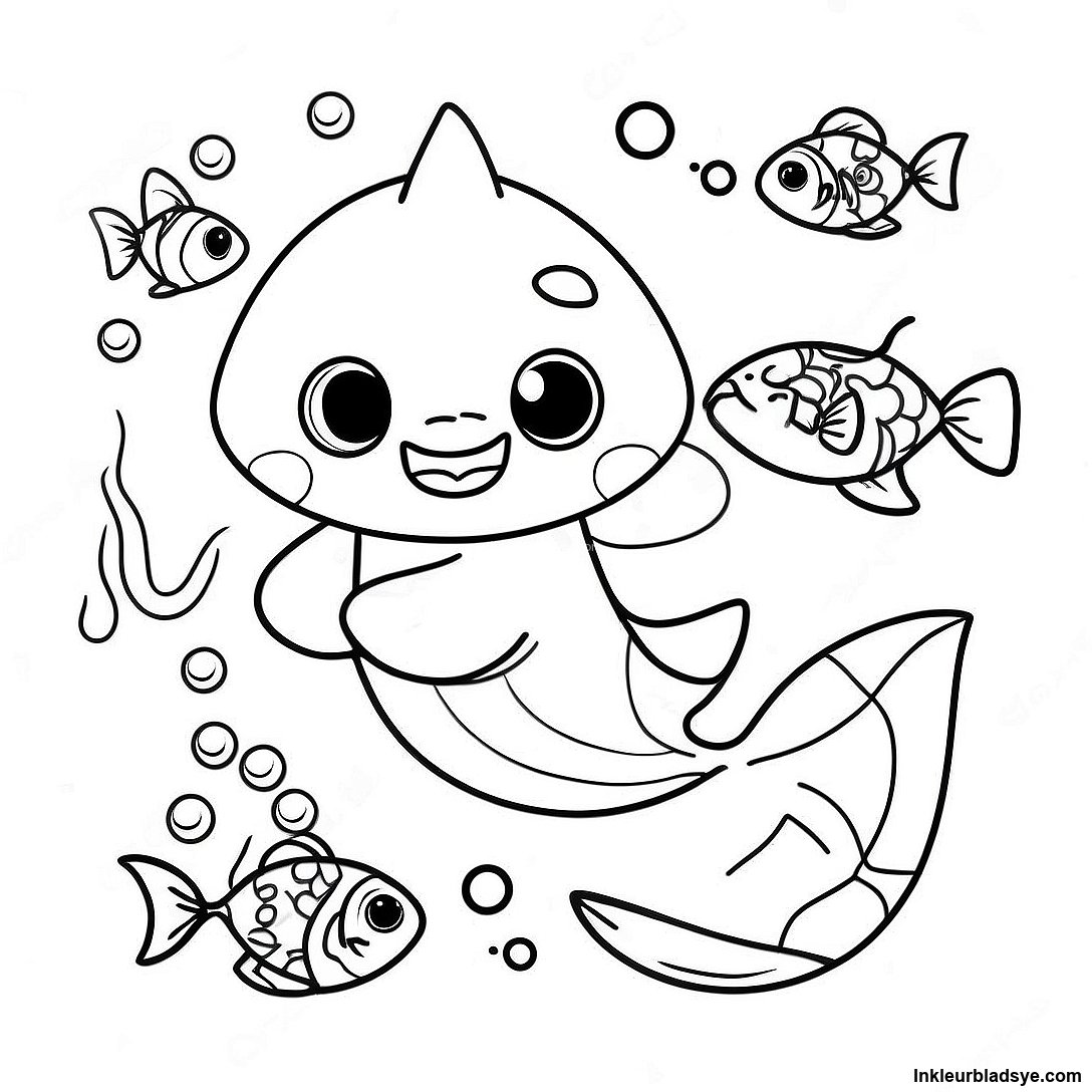 Laai Drukbare PDF af van Baby Shark Wat Met Kleurvolle Vis Speel Inkleurblad