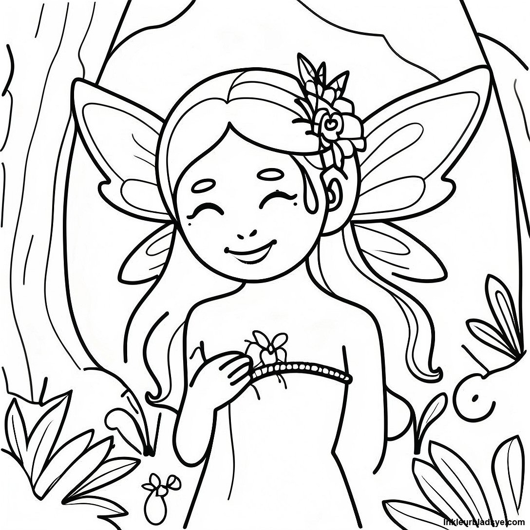 Laai Drukbare PDF af van Betowerende Feë In 'n Woud Inkleurblad