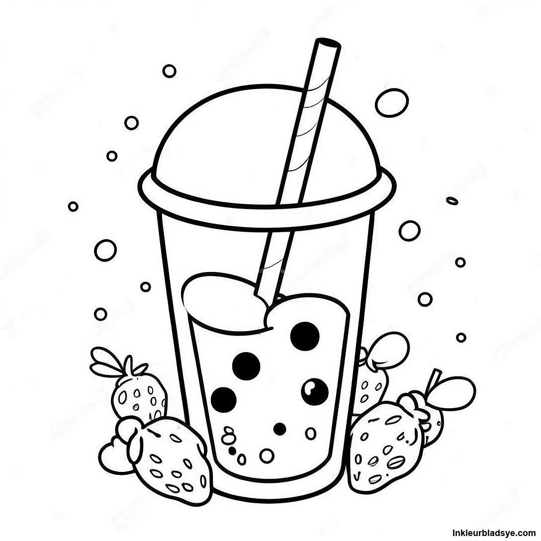 Laai Drukbare PDF af van Boba Tee Met Toppings Inkleurblad