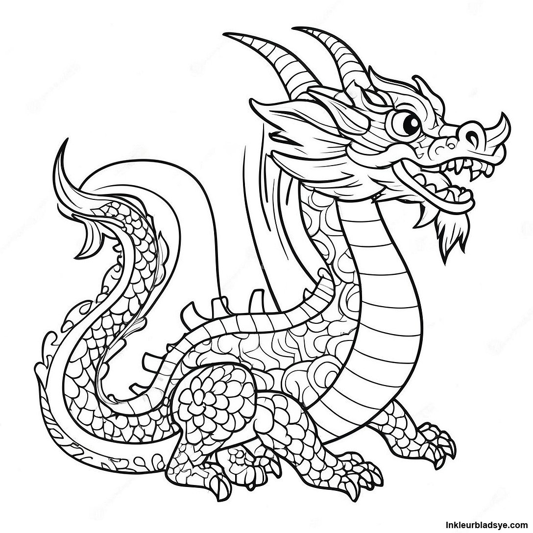 Laai Drukbare PDF af van Chinese Draak Inkleurblad