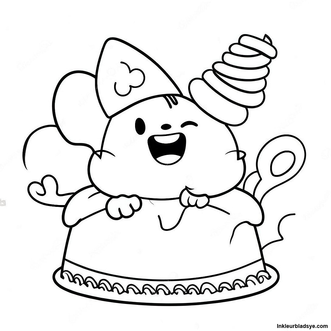 Chococat Met 'n Verjaardaghoed Inkleurblad