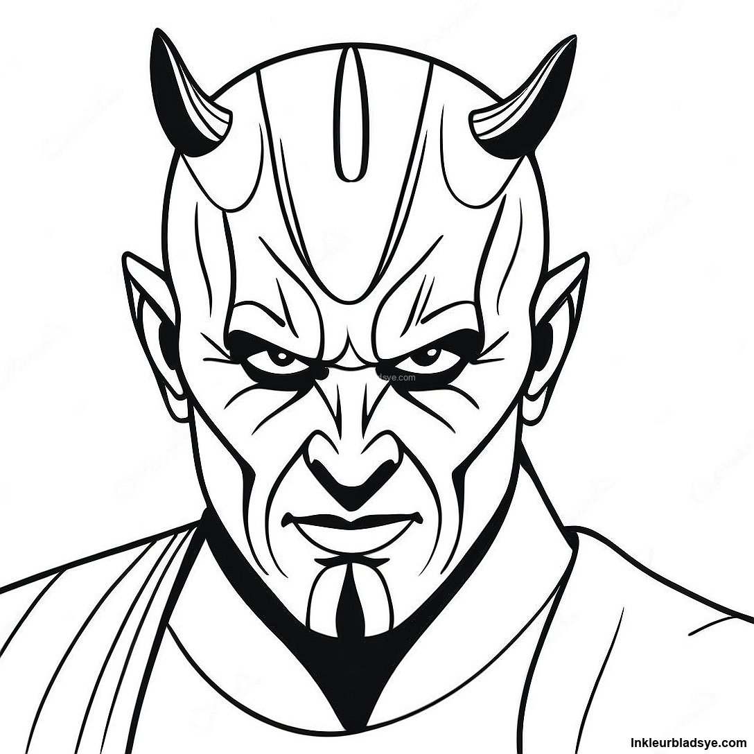Laai Drukbare PDF af van Darth Maul Se Vreesaanjaende Gesig Inkleurblad