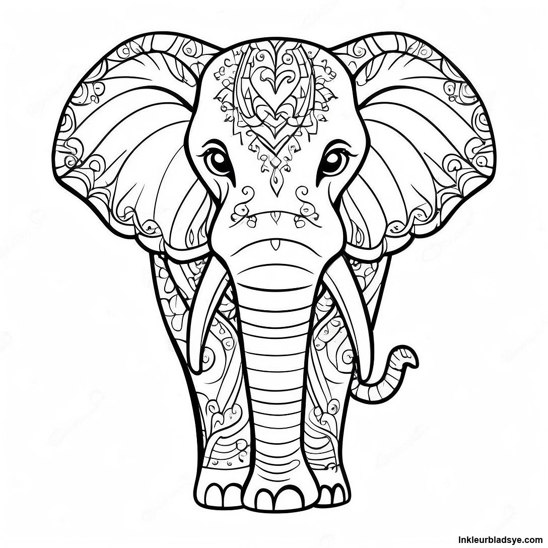 Laai Drukbare PDF af van Elegante Afrikaanse Olifant Inkleurblad