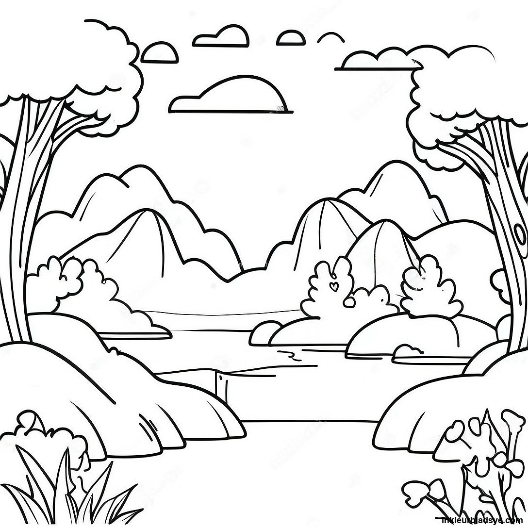 Fantasie Piksel Landskap Inkleurblad 76758 19564