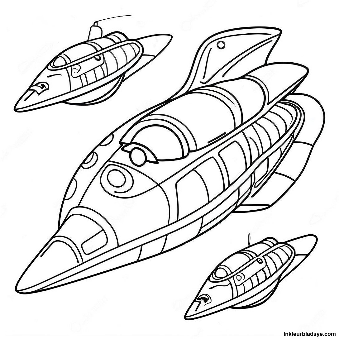 Laai Drukbare PDF af van Galaktiese Ruimteskepe Inkleurblad