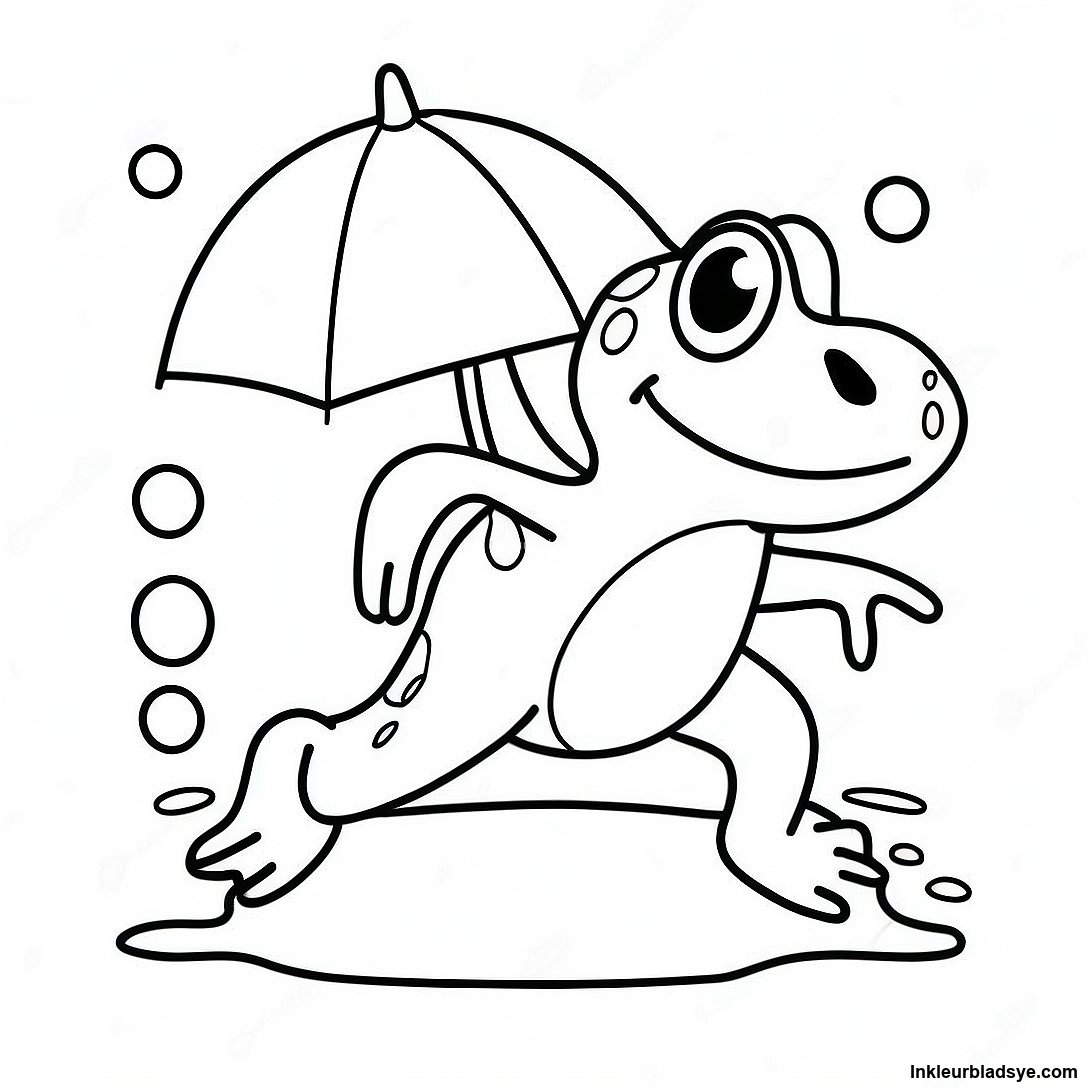 Laai Drukbare PDF af van Gelukkige Frog Wat In Die Reën Spring Inkleurblad