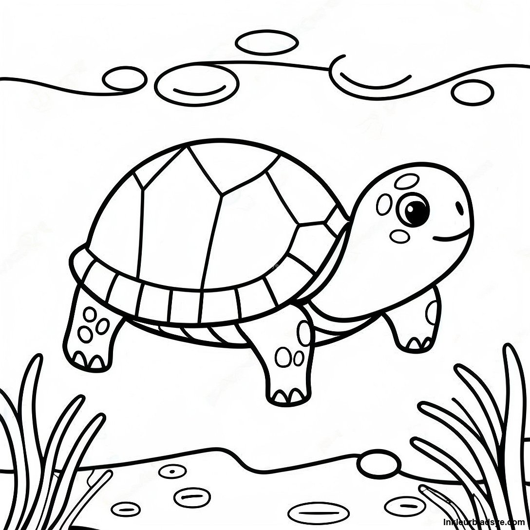 Laai Drukbare PDF af van Gelukkige Skilpad Wat Swem Inkleurblad