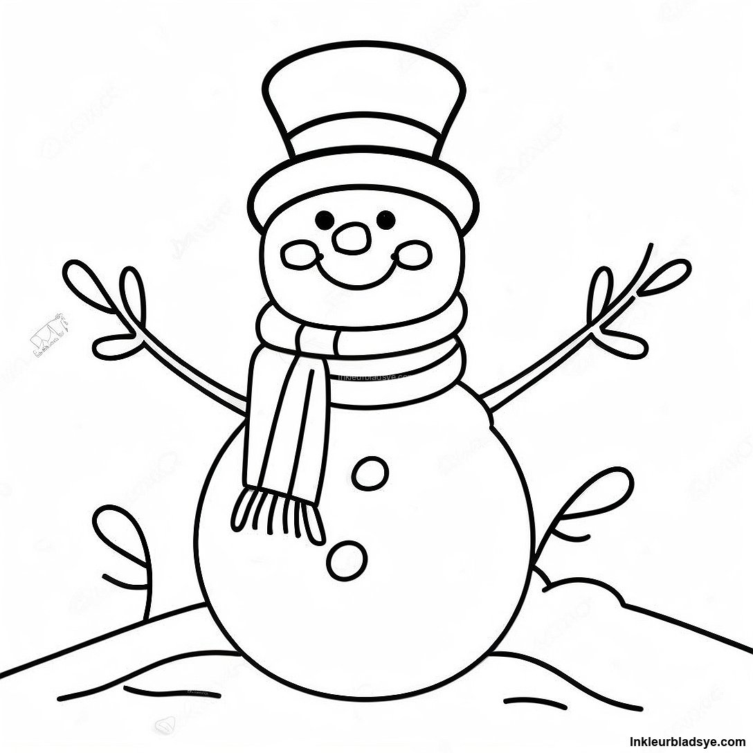 Laai Drukbare PDF af van Gelukkige Sneeuman Met Serpentine Inkleurblad