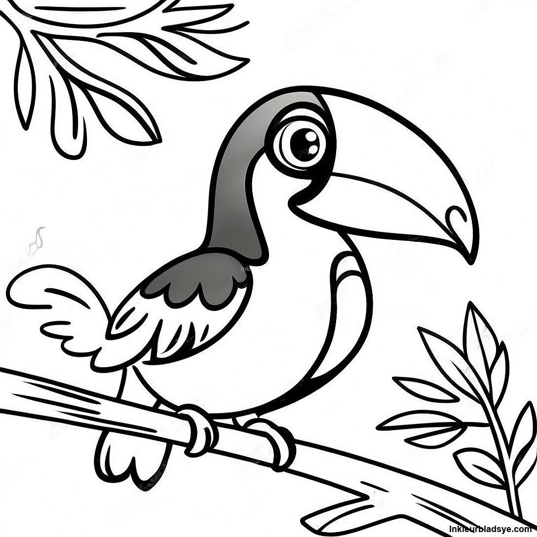 Laai Drukbare PDF af van Gelukkige Tukan Wat Op 'n Tak Sit Inkleurblad