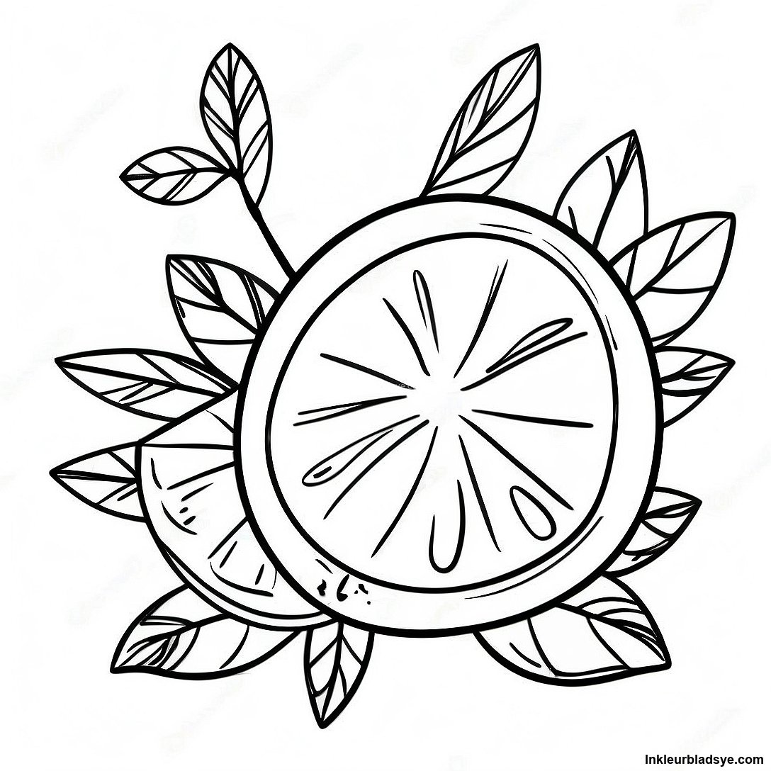 Laai Drukbare PDF af van Gesnyde Suurlemoen Met Blare Inkleurblad