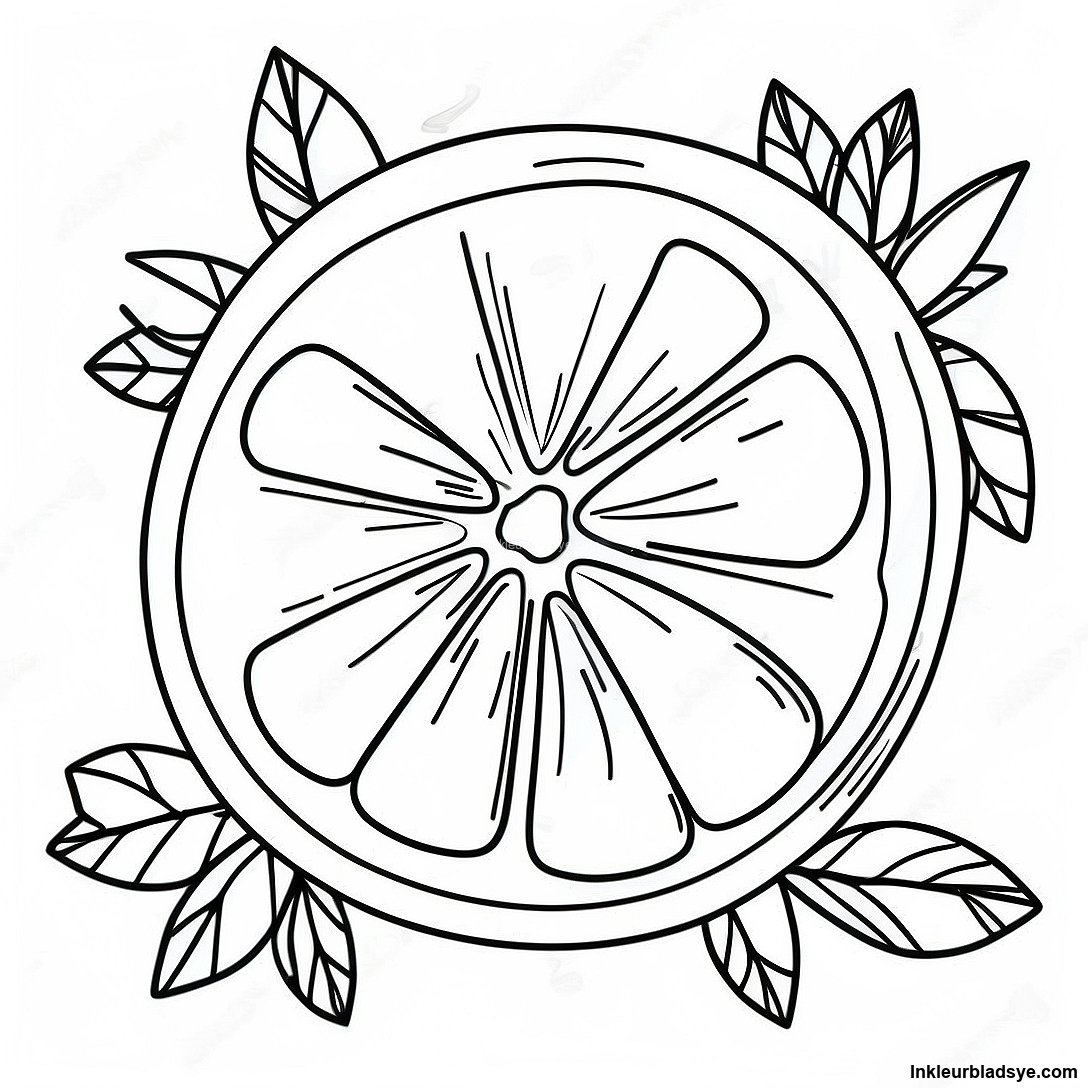 Laai Drukbare PDF af van Gesnyde Suurlemoen Met Blare Inkleurblad