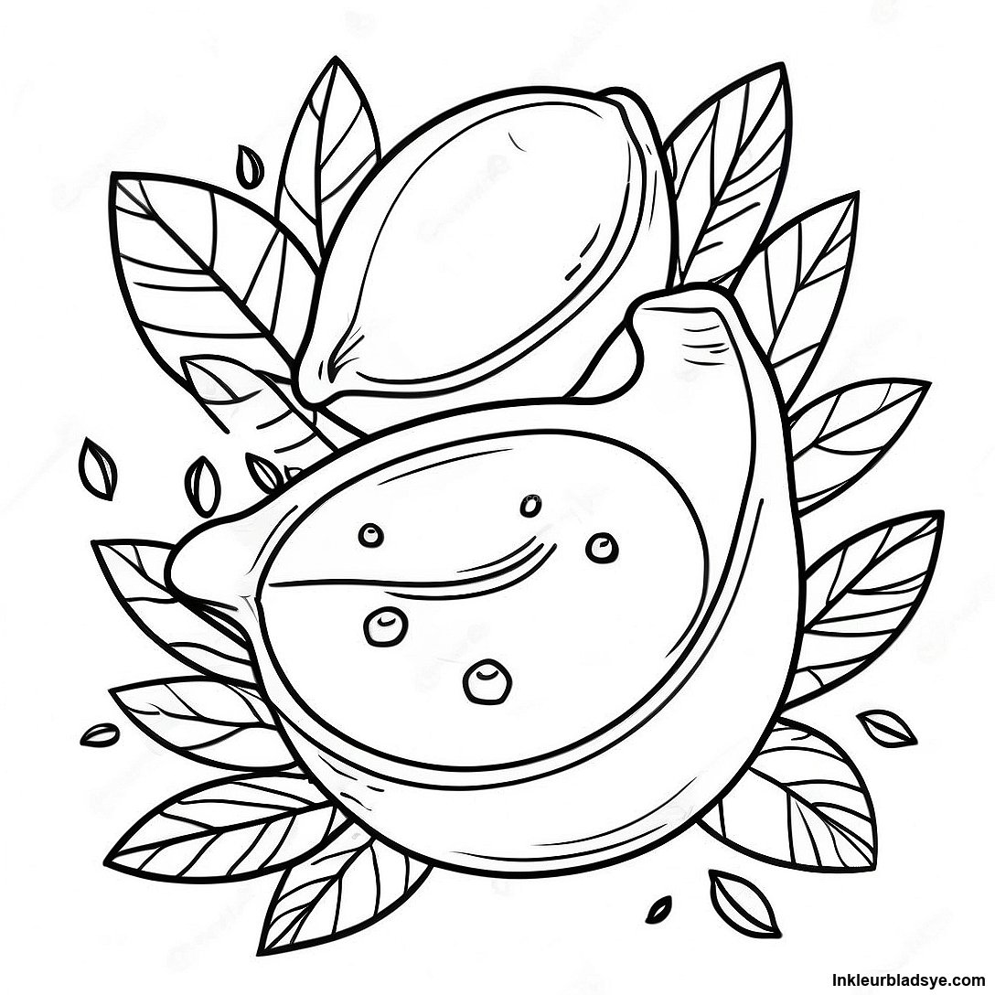 Laai Drukbare PDF af van Gesnyde Suurlemoen Met Blare Inkleurblad