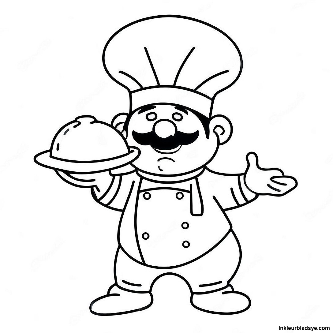 Laai Drukbare PDF af van Grappige Kok Met 'n Groot Hoed Inkleurblad