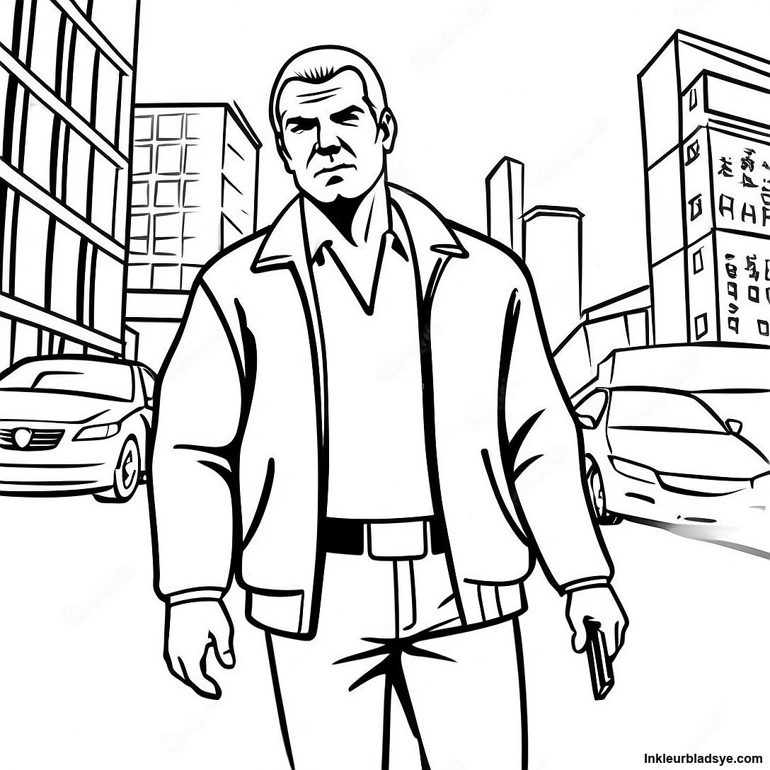 Laai Drukbare PDF af van Gta Karakter In Aksie Inkleurblad