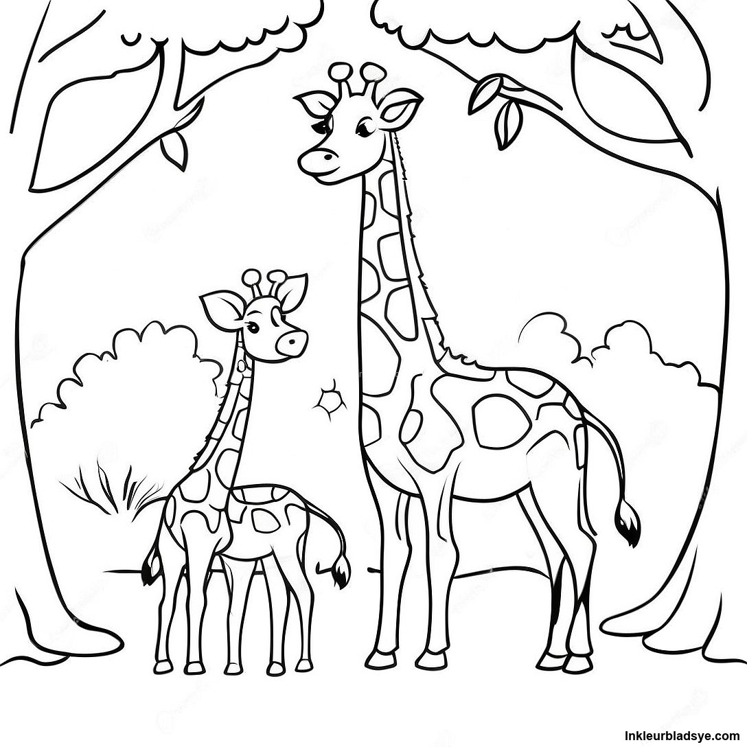 Laai Drukbare PDF af van Kameelperd Familie Onder Die Boom Inkleurblad