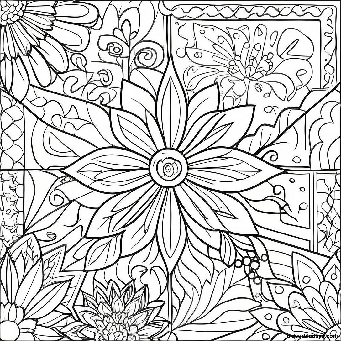 Laai Drukbare PDF af van Kleurvolle Blom Komberspatrone Inkleurblad