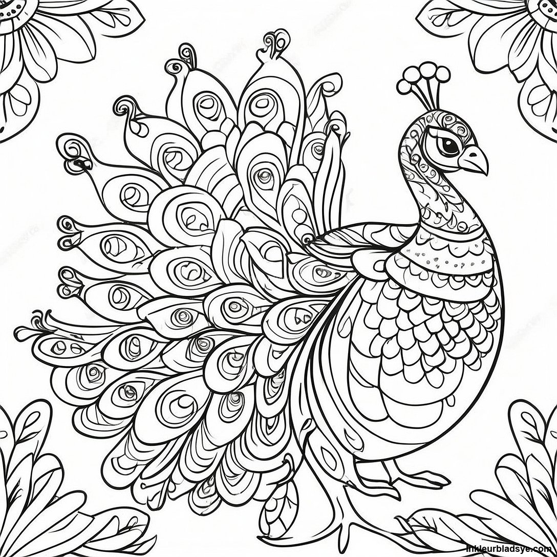 Laai Drukbare PDF af van Kleurvolle Pauw Met Oop Vere Inkleurblad