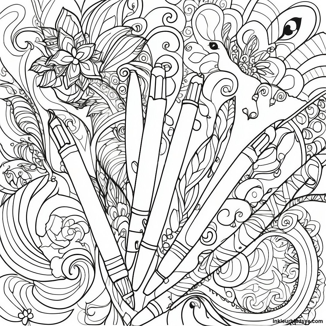 Laai Drukbare PDF af van Kreatiewe Pen Ontwerpe Inkleurblad
