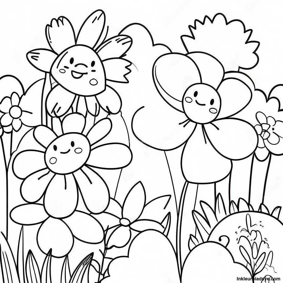 Laai Drukbare PDF af van Levendige Blomtuin Inkleurblad