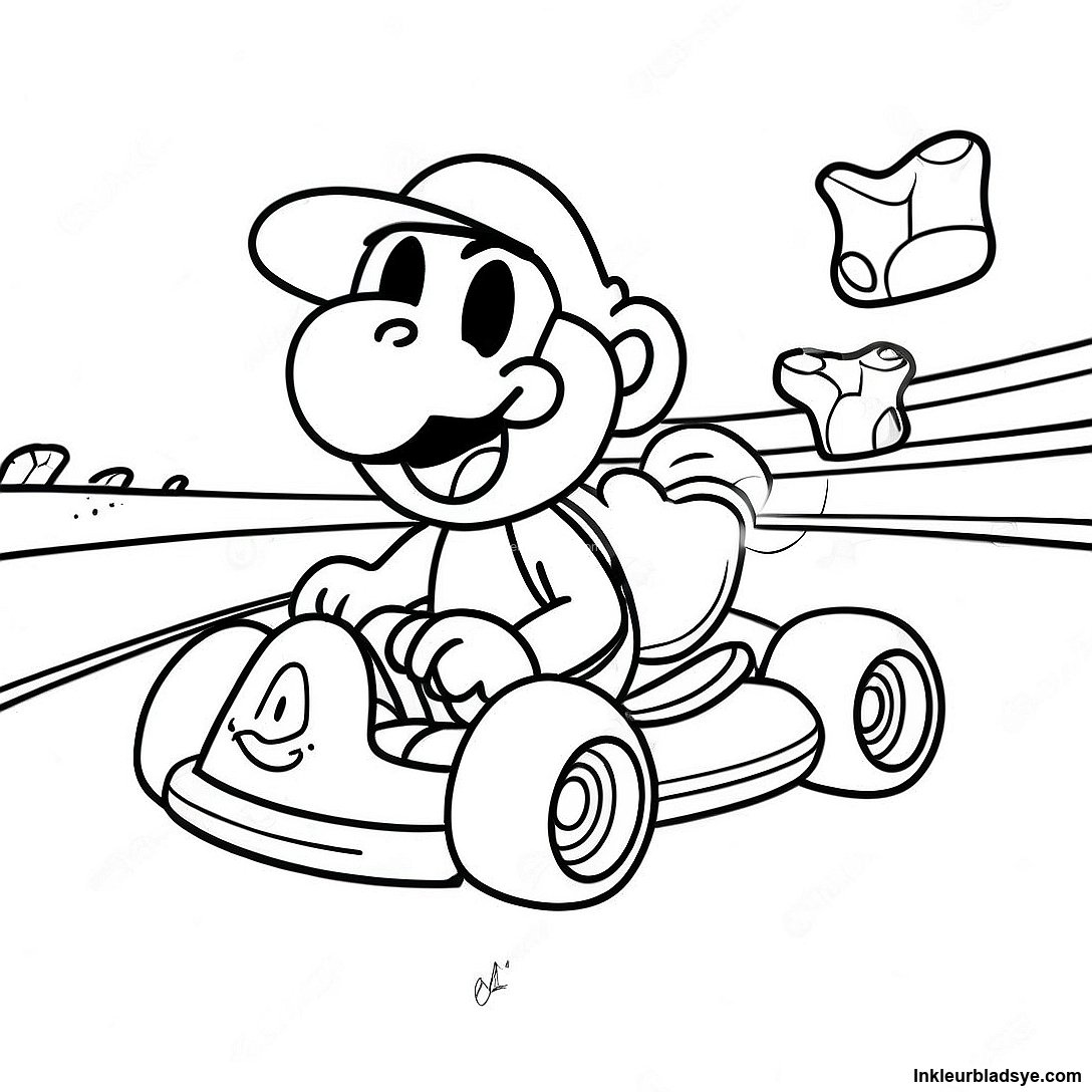 Mario Kart Yoshi Op 'n Baan Inkleurblad