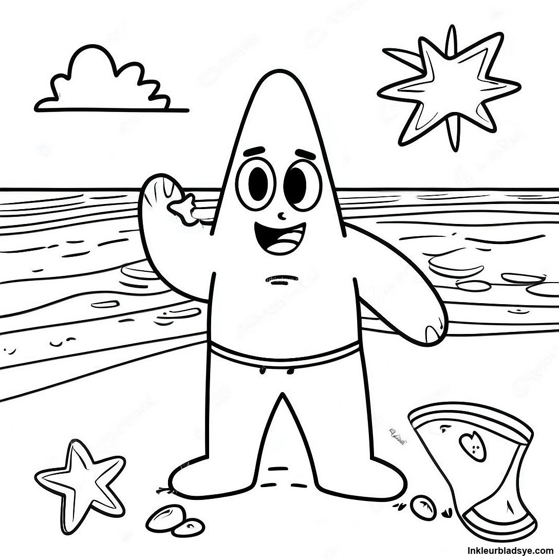 Laai Drukbare PDF af van Patrick Ster Op Die Strand Inkleurblad