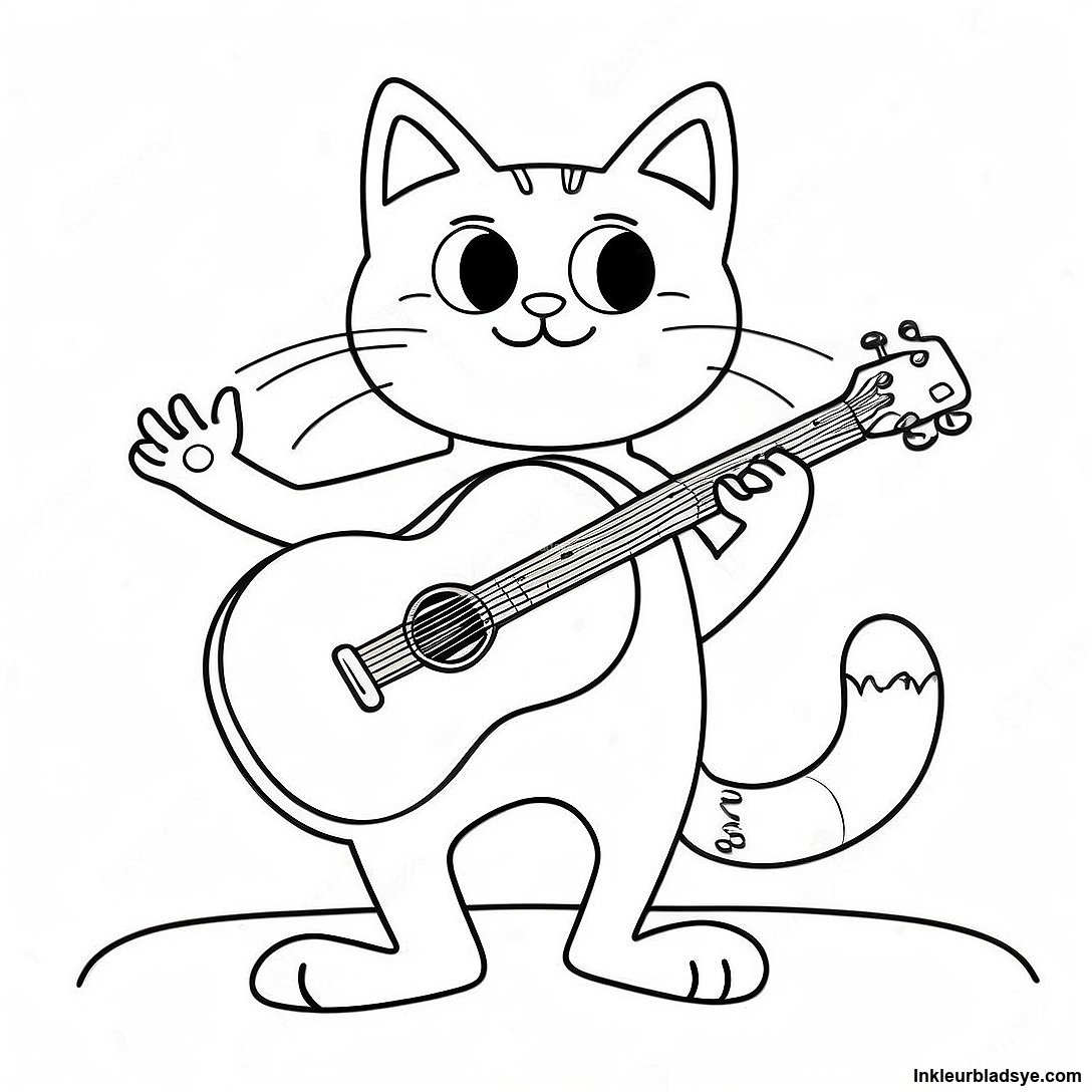 Pete Die Kat Wat Kitaar Speel Inkleurblad
