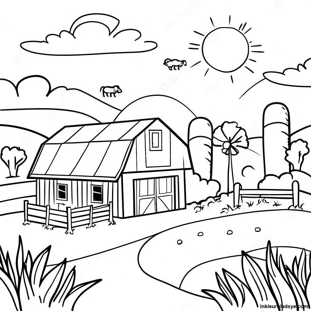 Plaas Landskap Inkleurblad