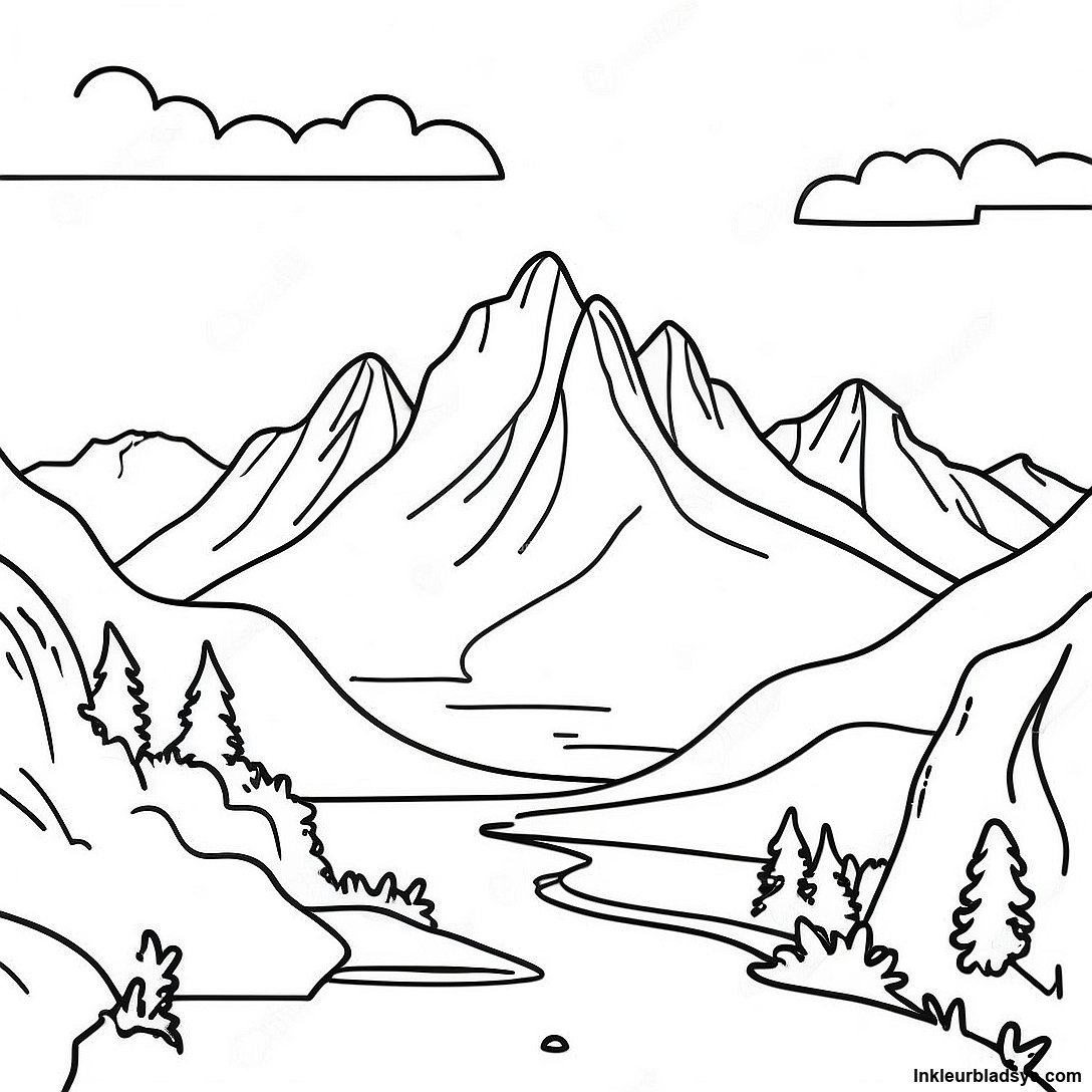 Realistiese Berg Landskap Inkleurblad