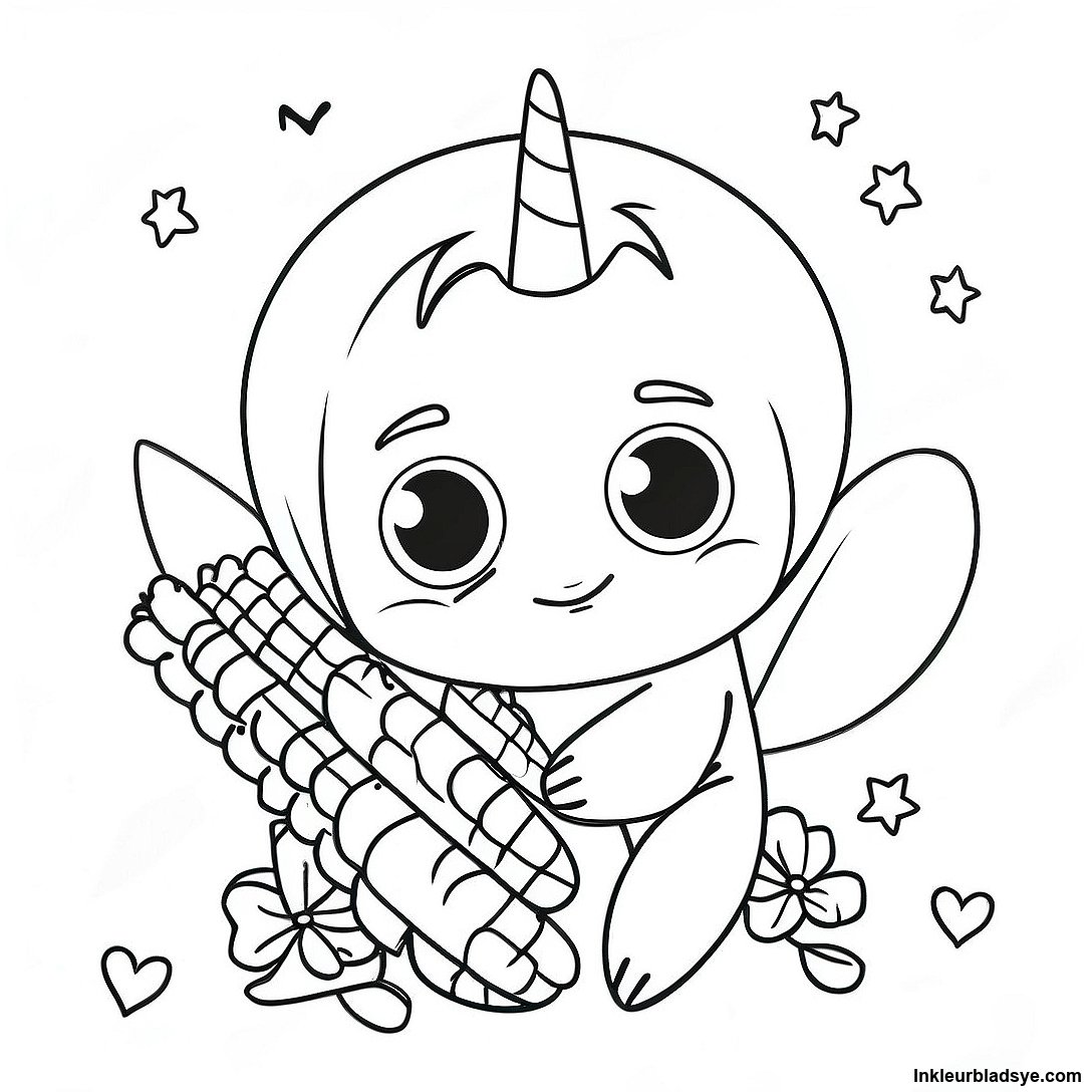 Laai Drukbare PDF af van Reënboog Mielie Met Groot Oë Inkleurblad