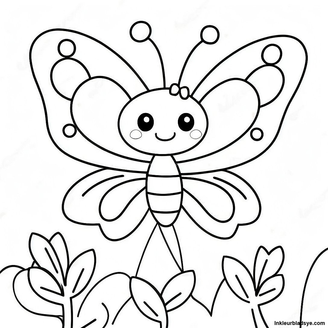 Laai Drukbare PDF af van Schattige Blom Vlinder Met Glimlag Inkleurblad