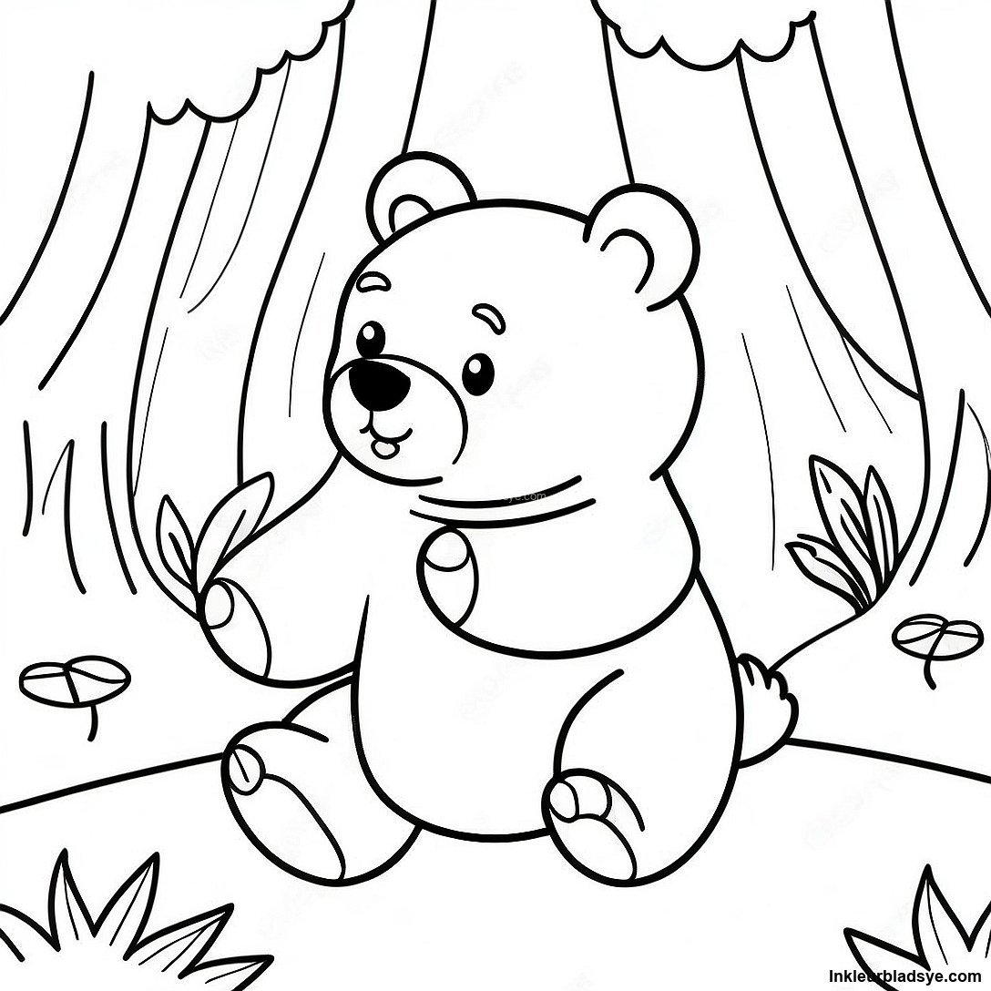 Laai Drukbare PDF af van Schattige Bruin Beer Wat In Die Bos Speel Inkleurblad
