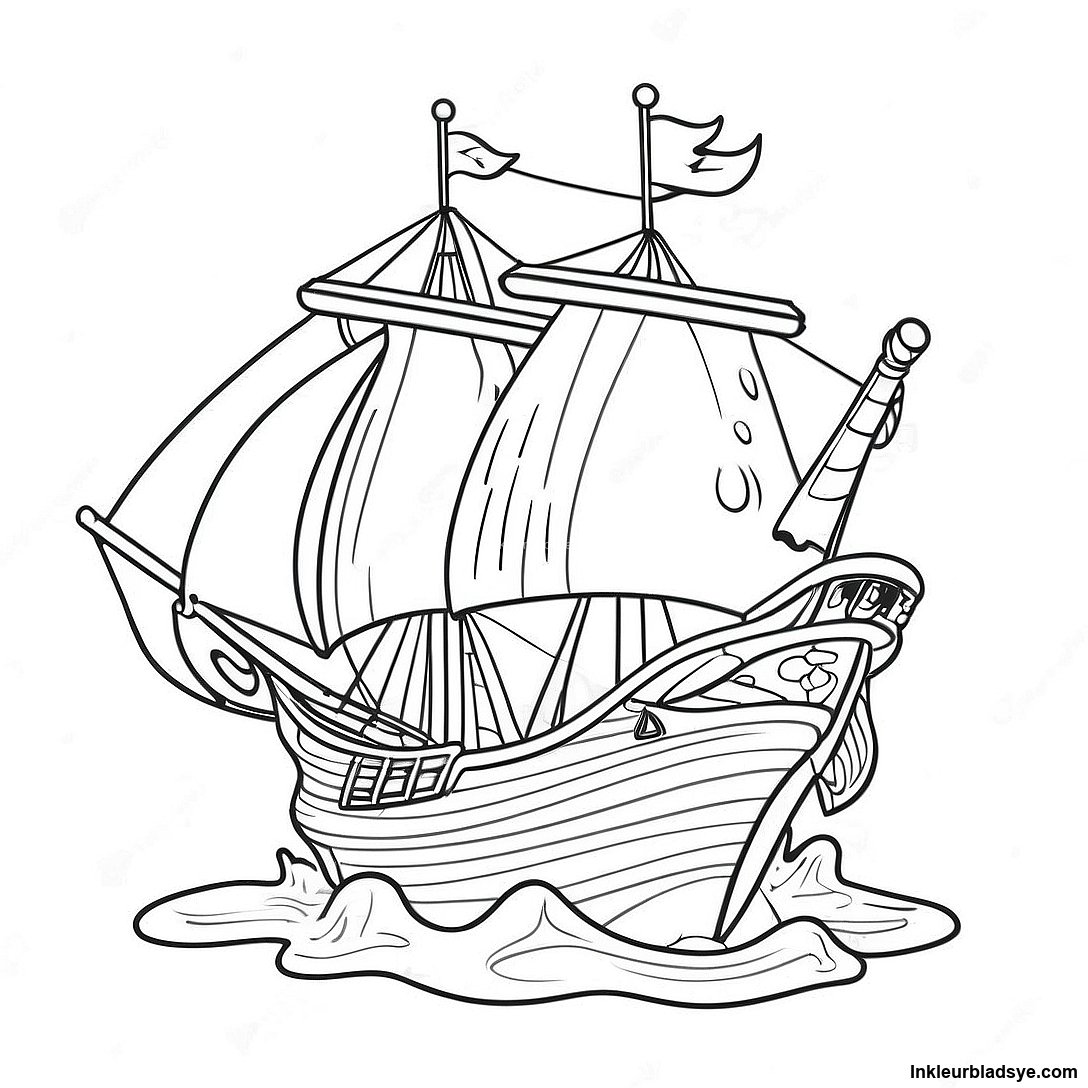 Seilende Seerower Skip Met Jolly Roger Vlag Inkleurblad 37171 8120
