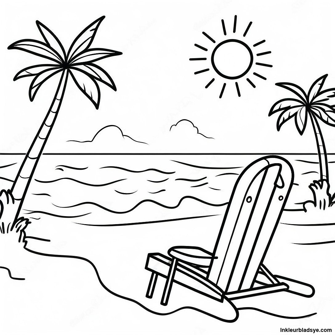 Laai Drukbare PDF af van Sonbestraalde Strand Toneel Inkleurblad