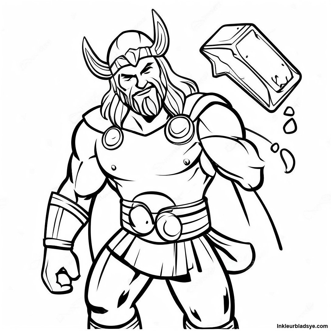 Laai Drukbare PDF af van Thor Met Mjolnir Inkleurblad