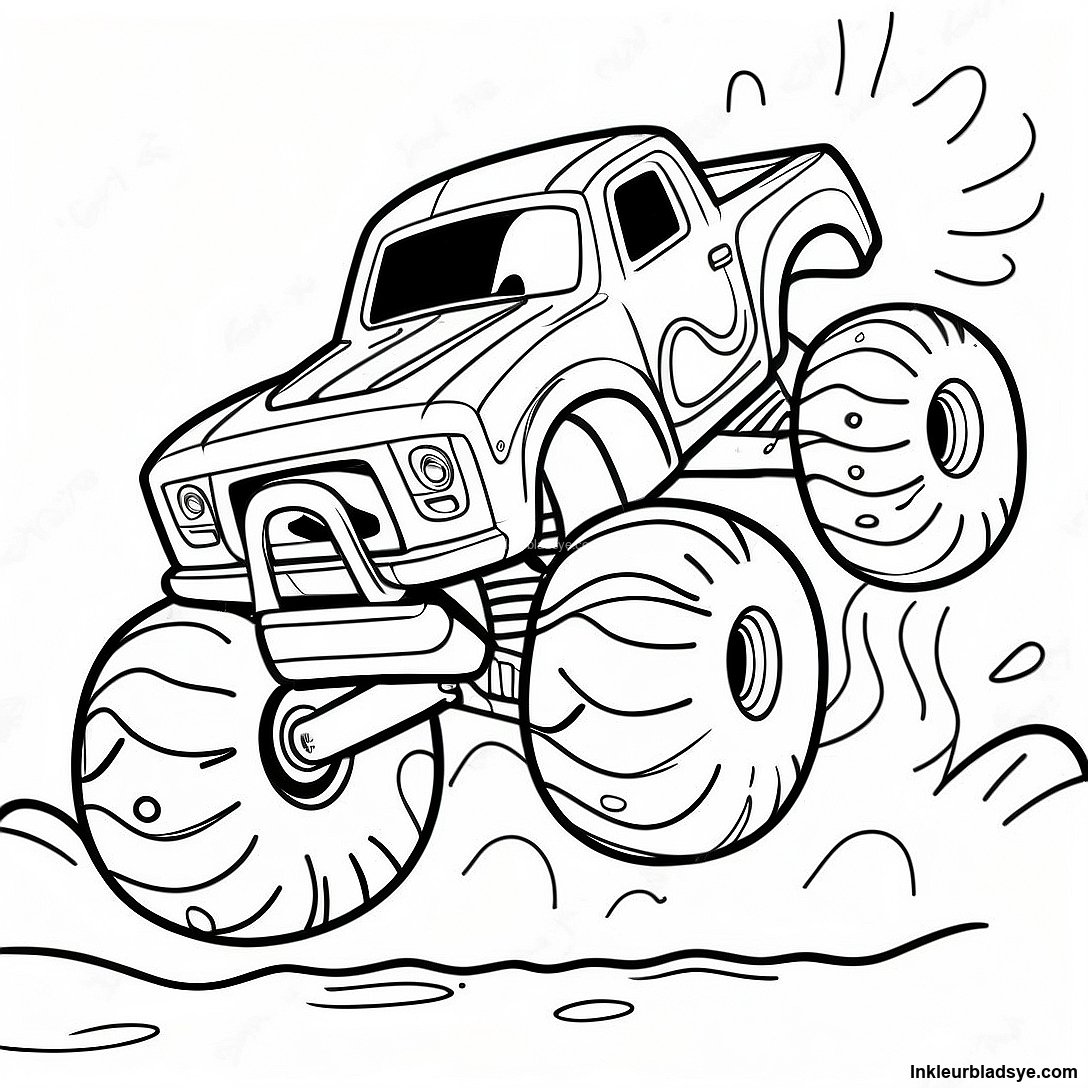 Laai Drukbare PDF af van Vreeslike Monstertruck Wat Deur Modder Ras Inkleurblad