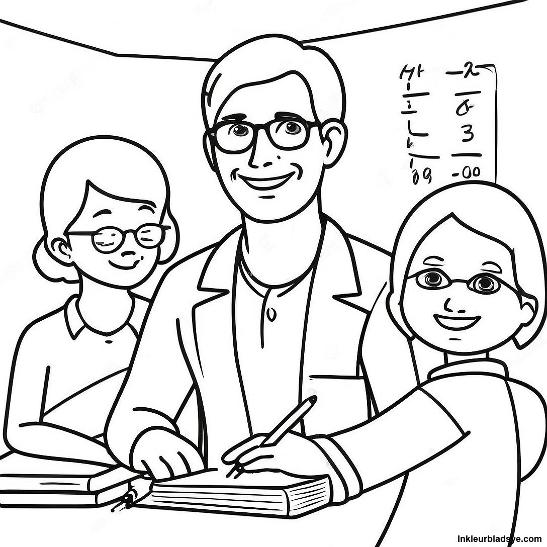 Laai Drukbare PDF af van Vriendelike Onderwyser Met Studente Inkleurblad