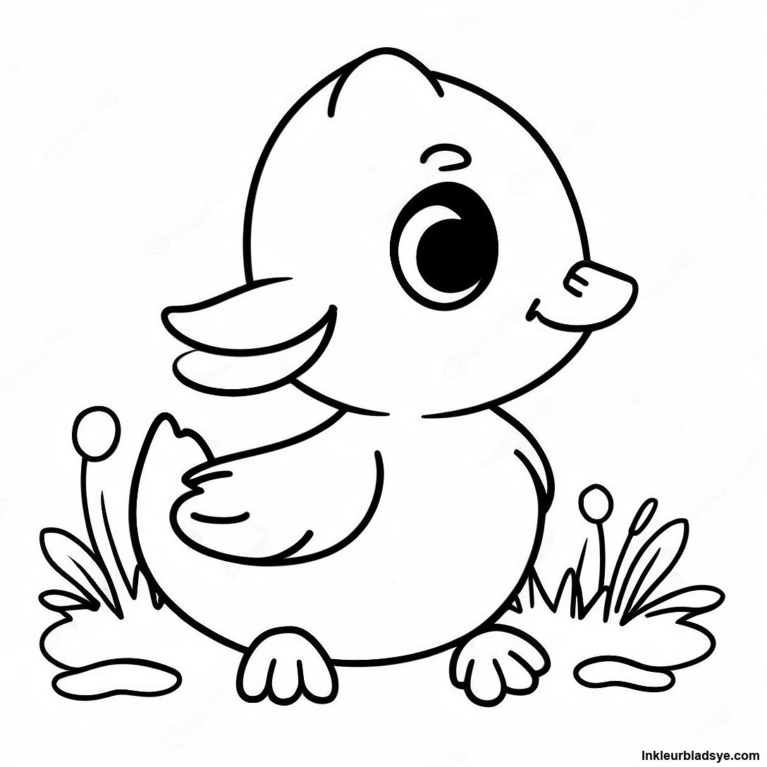 Laai Drukbare PDF af van Vrolike Gele Eend Inkleurblad