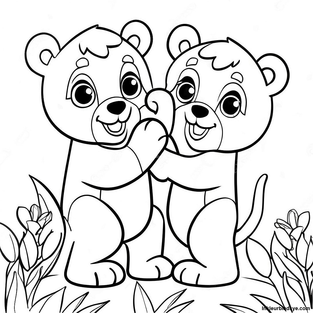 Laai Drukbare PDF af van Welpies Met Blomme Inkleurblad