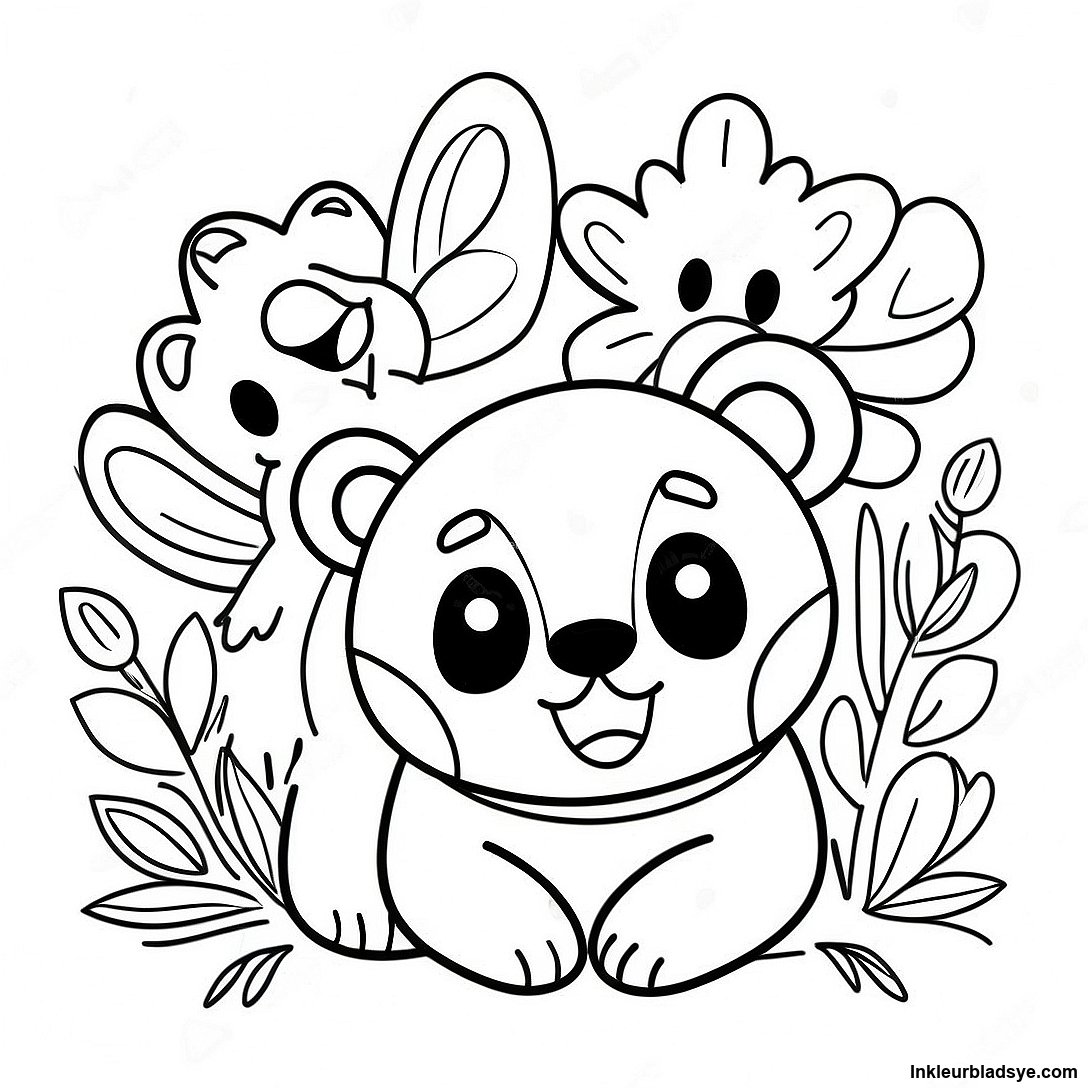 Laai Drukbare PDF af van Welpies Met Blomme Inkleurblad