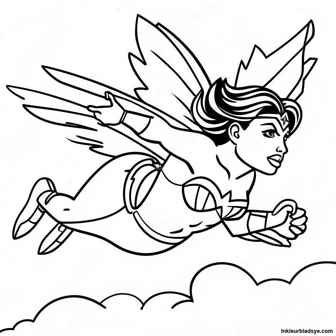 Wondervrou Wat Deur Die Lug Vlieg Inkleurblad
